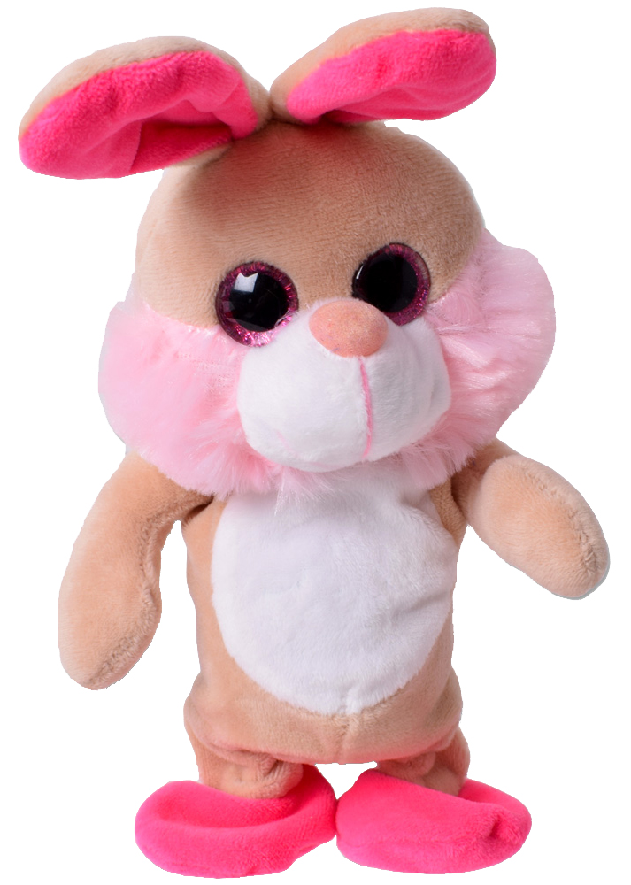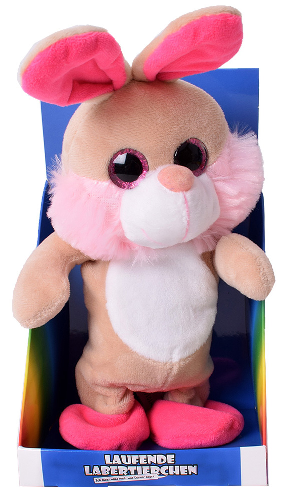 LABERTIER Hase Pink GlitzerAugen Nachsprechende Kuscheltier Sprechen&Laufen ca.20cm im Verkaufsdiplay (inkls. Batt. 3xAAA)