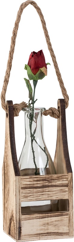Glasvase in Holzgestell mit Kordel im Vintagelook ca. 20,5 x 8,5cm