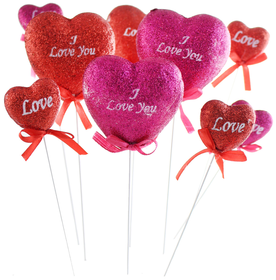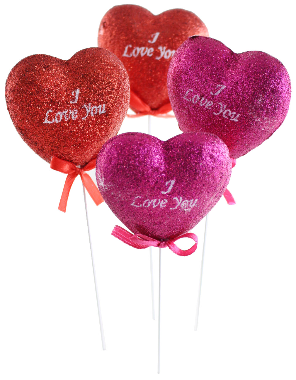 GlitterHerz Dekoartikel "I Love You" Blumenstecker mit Schleife und Glitter ca. 7cm 2/s