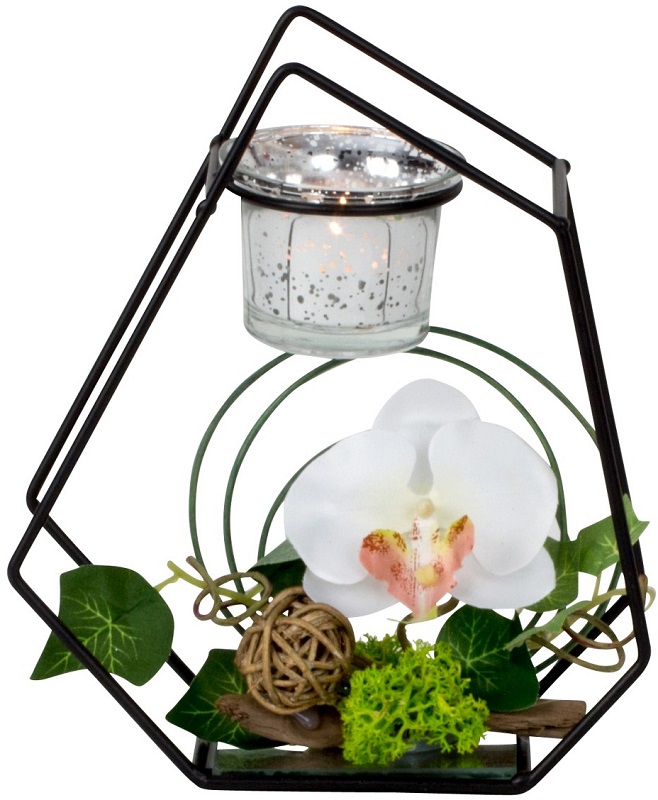 Metalldeko mit weißer Orchidee & Teelichthalter ca. 18,5 x 16cm