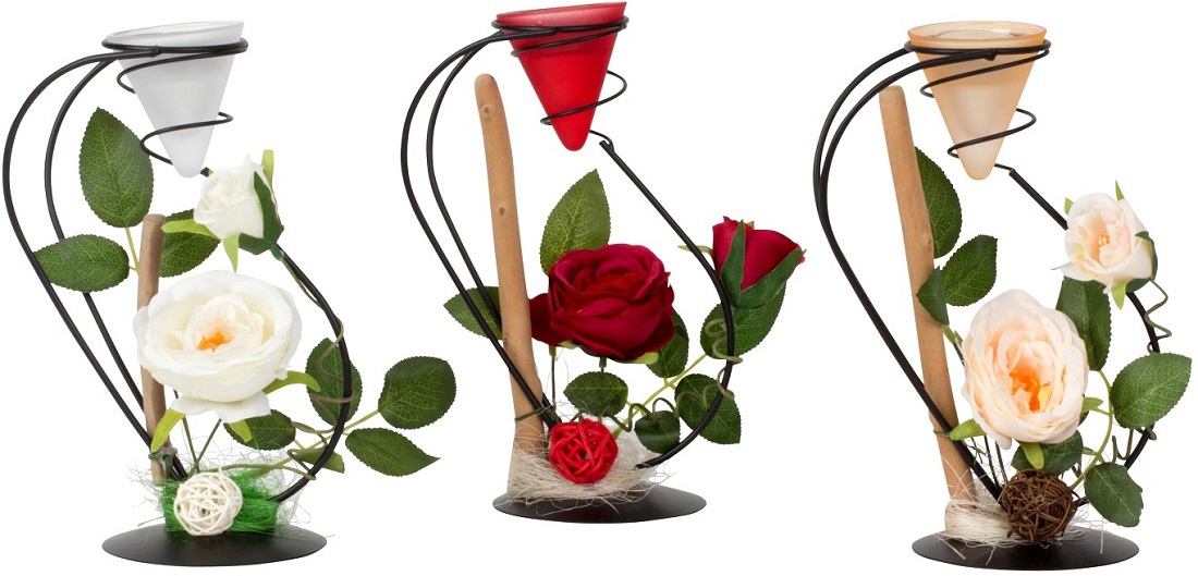 Metalldeko verziert mit Rosen & Teelichthalter 3/s ca. 23,5 x 15cm (Weiß, Rot, A