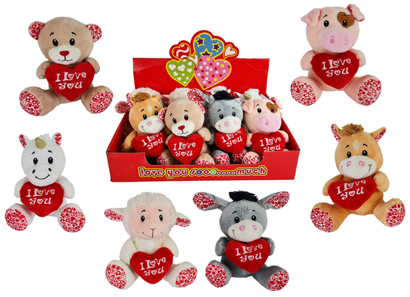 Plüsch Tiersortiment mit HERZ I Love You 6-fach sort. ca. 15cm in 8er T-Dsp.