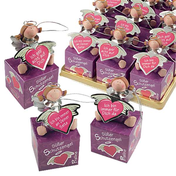 Schutzengel auf Pralinenherz Box Goldenem einwickler&Schleife Textkärtchen mit S
