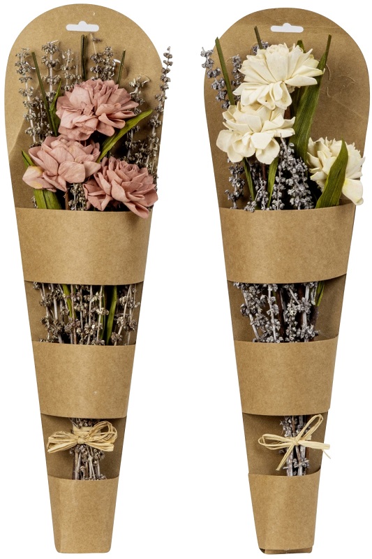 Trockenblumen-Gesteck 2/s mit Rosa & Weißen Blumen gepackt in Kraftpapier ca. 45