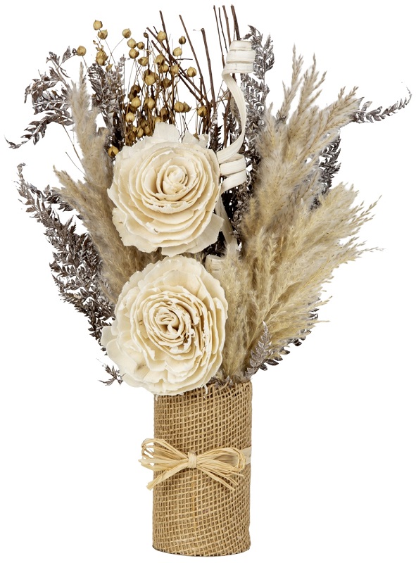 Trockenblumen-Gesteck mit Weißen Blumen stehend ca. 36cm