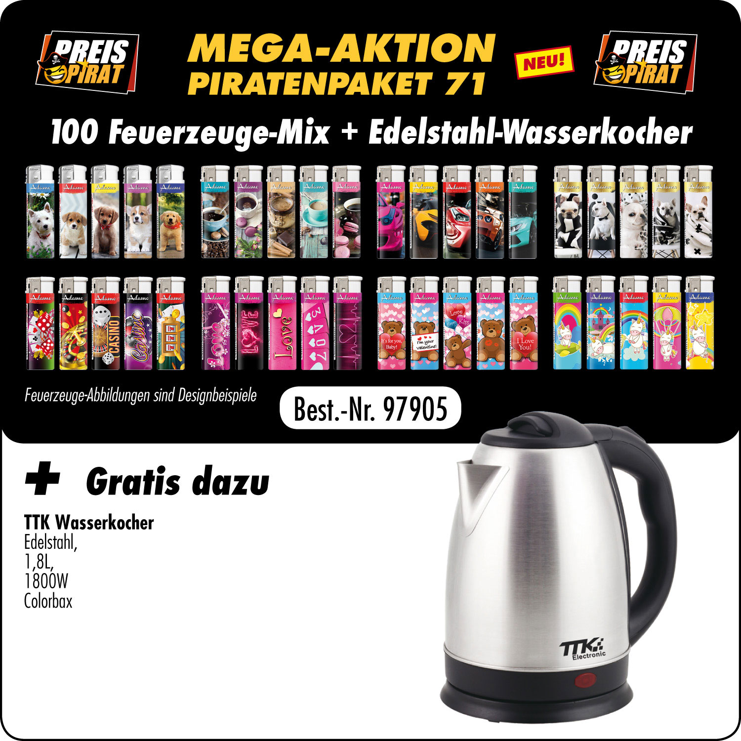 Piraten Aktions Paket S 71- mit 100 Motiv Fzg. Mix + Gratis TTK Wasserkocher Edelstahl, 1,8L, 1800W Colorbax