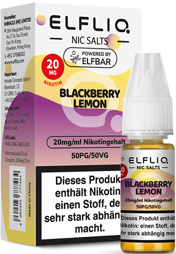 Elfbar ELFLIQ E-Liquid 20mg Nikotinsalz BLACKBERRY LEMON (Brombeere & Zitrone) á 10ml im 10er Dsp.(PG-VG Anteil 50/50 %)(mit Steuerbanderole)
