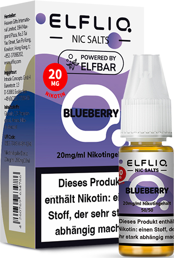 Elfbar ELFLIQ E-Liquid 20mg Nikotinsalz BLUEBERRY (Blaubeere) á 10ml im 10er Dsp.(PG-VG Anteil 50/50 %)(mit Steuerbanderole)