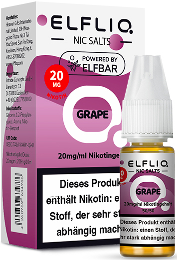 Elfbar ELFLIQ E-Liquid 20mg Nikotinsalz GRAPE (Traube) á 10ml im 10er Dsp.(PG-VG Anteil 50/50 %)(mit Steuerbanderole)