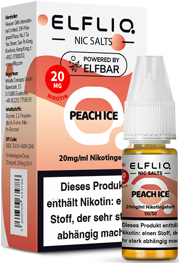 Elfbar ELFLIQ E-Liquid 20mg Nikotinsalz PEACH ICE (Pfirsich Ice) á 10ml im 10er Dsp.(PG-VG Anteil 50/50 %)(mit Steuerbanderole)