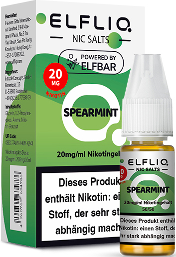 Elfbar ELFLIQ E-Liquid 20mg Nikotinsalz SPEARMINT (Minze) á 10ml im 10er Dsp.(PG-VG Anteil 50/50 %)(mit Steuerbanderole)