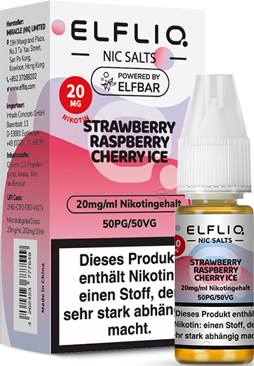 Elfbar ELFLIQ E-Liquid 20mg Nikotinsalz STRAWBERRY RASPBERRY CHERRY ICE (Erdbeere, Himbeere, Kirsche & Ice) á 10ml im 10er Dsp.(PG-VG Anteil 50/50 %)(mit Steuerbanderole)