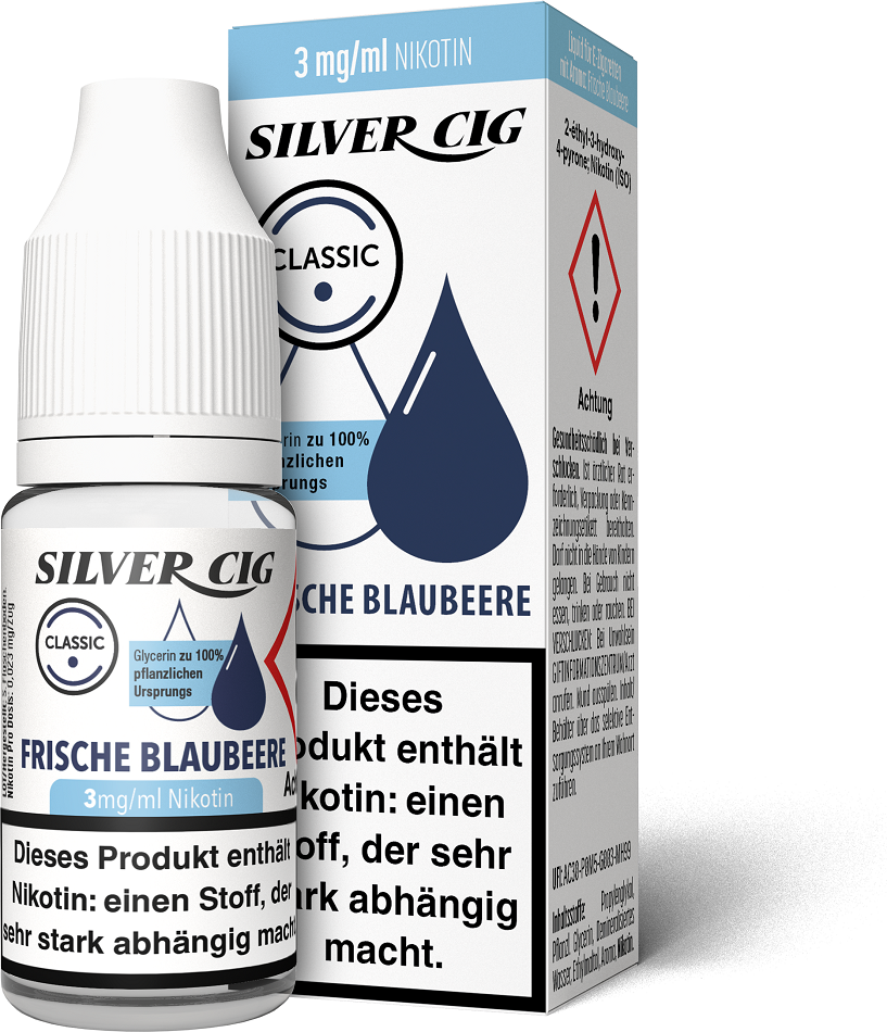 E-Liquid Silver-Cig FRISCHE BLAUBEERE 3mg/ml Nikotin 10ml im 5er Dsp.(DPT2 Konfo
