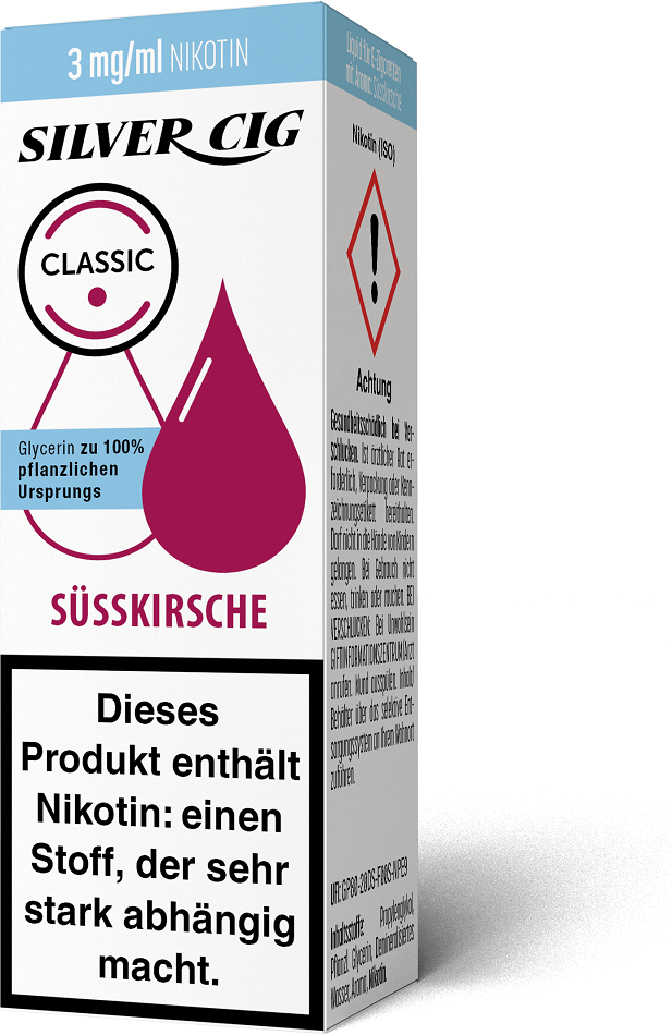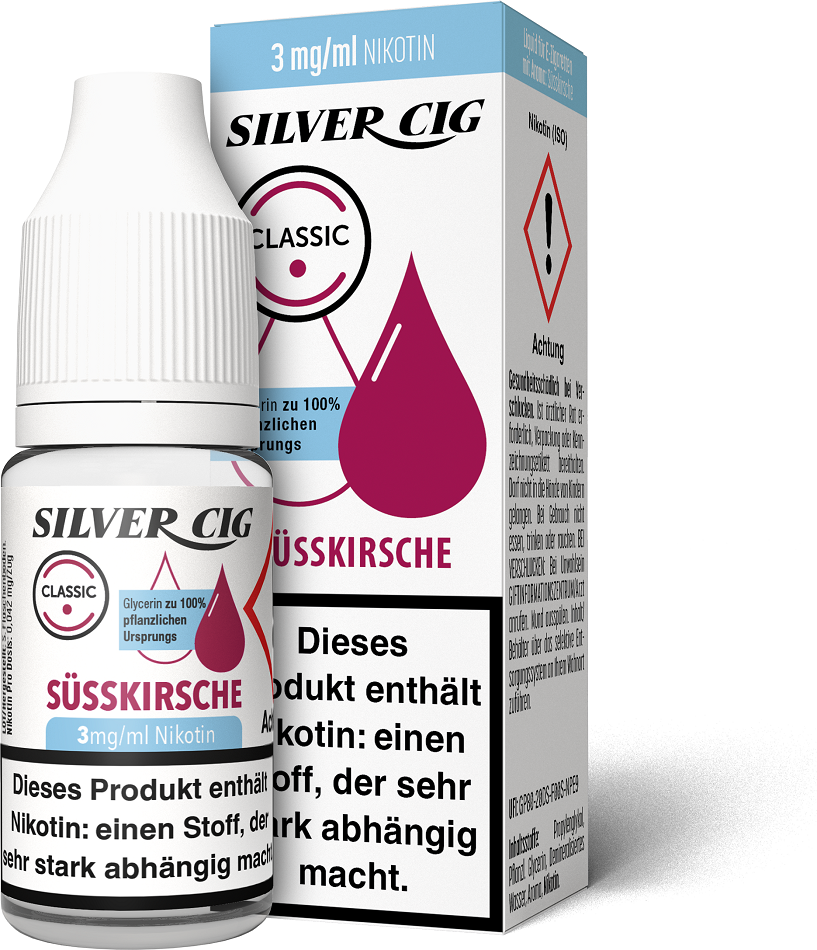 E-Liquid Silver-Cig SÜSS KIRSCHE 3mg/ml Nikotin 10ml im 5er Dsp.(DPT2 Konform EU Herstellung PG-VG Anteil 70/30%)(mit Steuerbanderole)