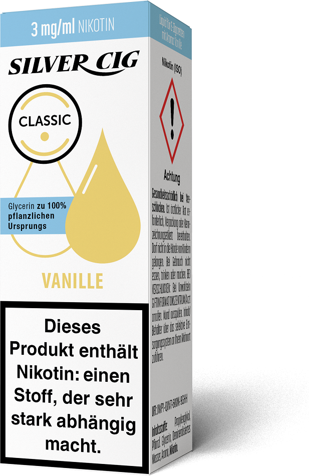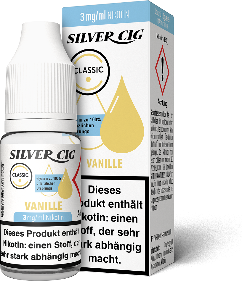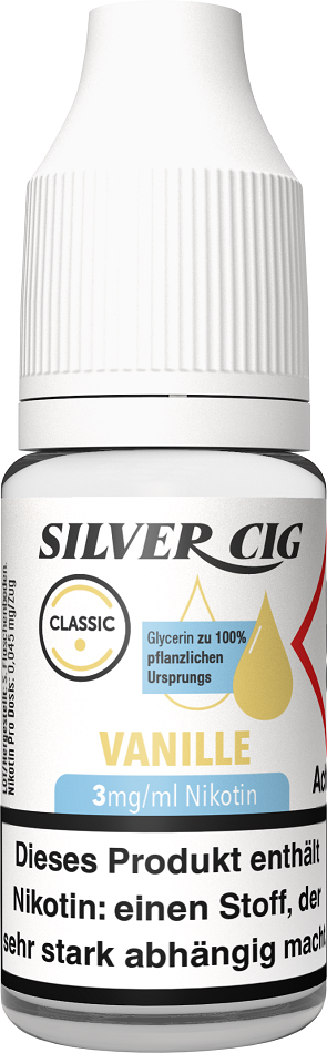E-Liquid Silver-Cig VANILLE 3mg/ml Nikotin 10ml im 5er Dsp.(DPT2 Konform EU Herstellung PG-VG Anteil 70/30%)(mit Steuerbanderole)