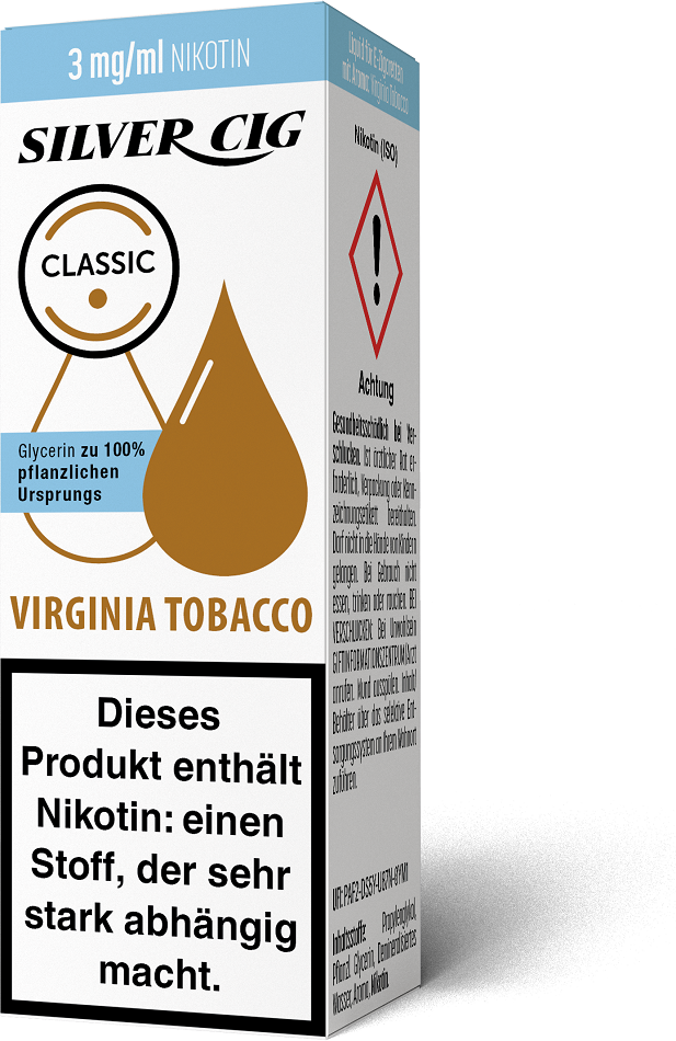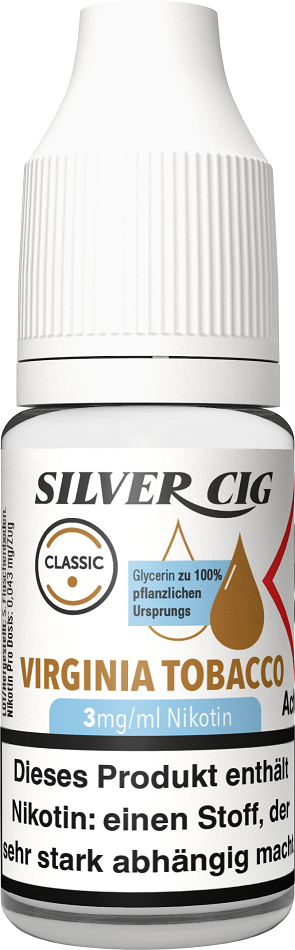 E-Liquid Silver-Cig VIRGINIA TOBACCO 3mg/ml Nikotin 10ml im 5er Dsp.(DPT2 Konform EU Herstellung PG-VG Anteil 70/30%)(mit Steuerbanderole)