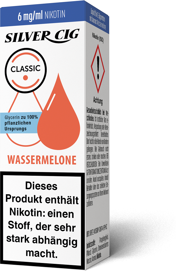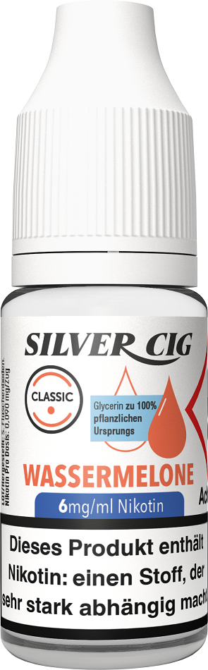E-Liquid Silver-Cig WASSERMELONE 6mg/ml Nikotin 10ml im 5er Dsp.(DPT2 Konform EU