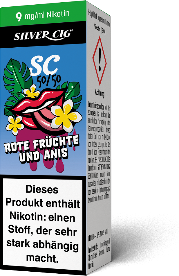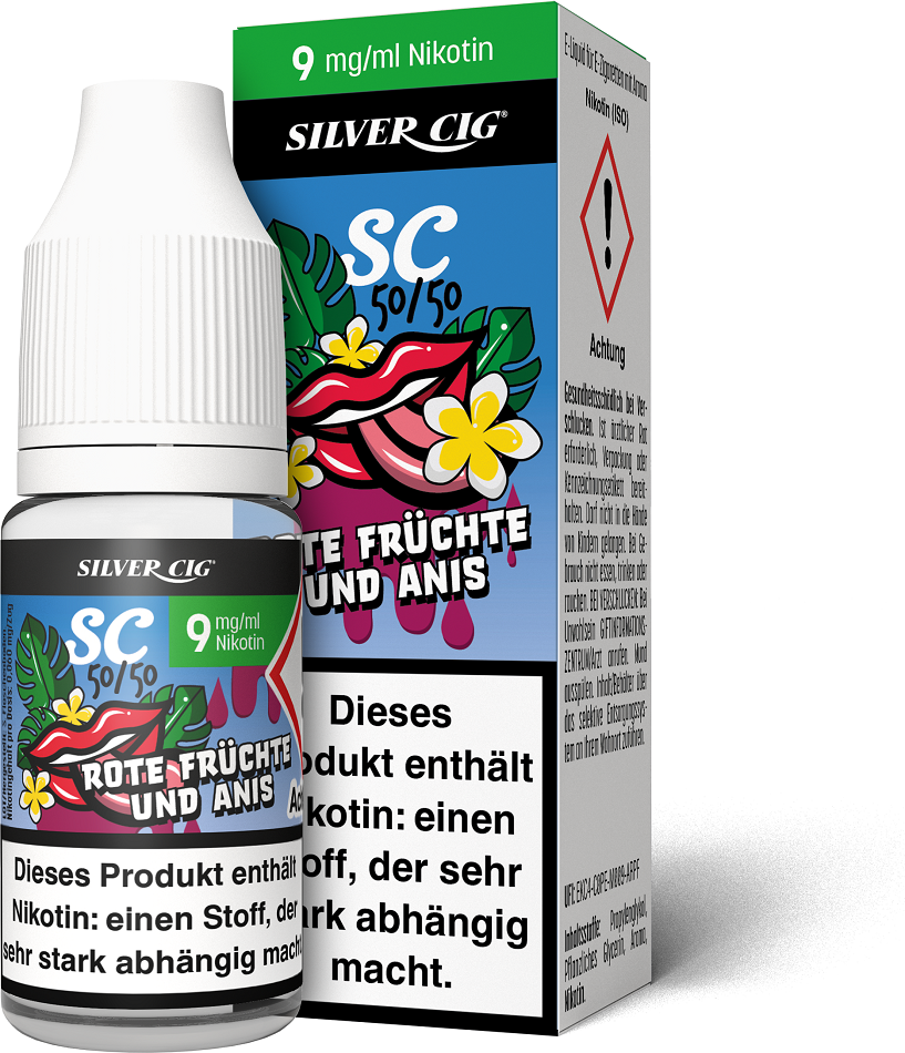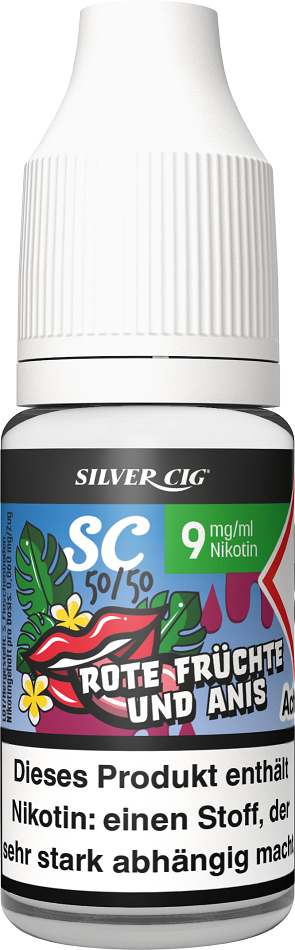 E-Liquid Silver-Cig ROTE FRÜCHTE & ANIS 9mg/ml Nikotin 10ml im 5er Dsp.(DPT2 Konform EU Herstellung PG-VG Anteil 50/50%)(mit Steuerbanderole)