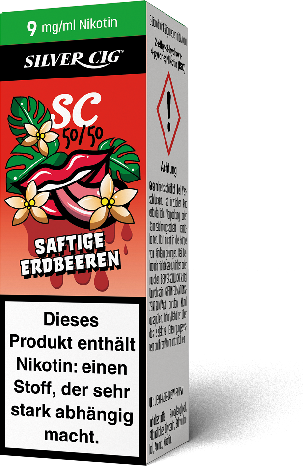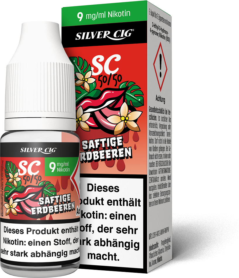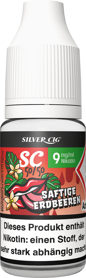 E-Liquid Silver-Cig SAFTIGE ERDBEERE 9mg/ml Nikotin 10ml im 5er Dsp.(DPT2 Konfor