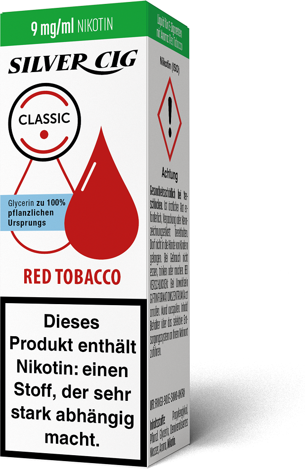 E-Liquid Silver-Cig RED TOBACCO 9mg/ml Nikotin 10ml im 5er Dsp.(DPT2 Konform EU Herstellung PG-VG Anteil 70/30%)(mit Steuerbanderole)
