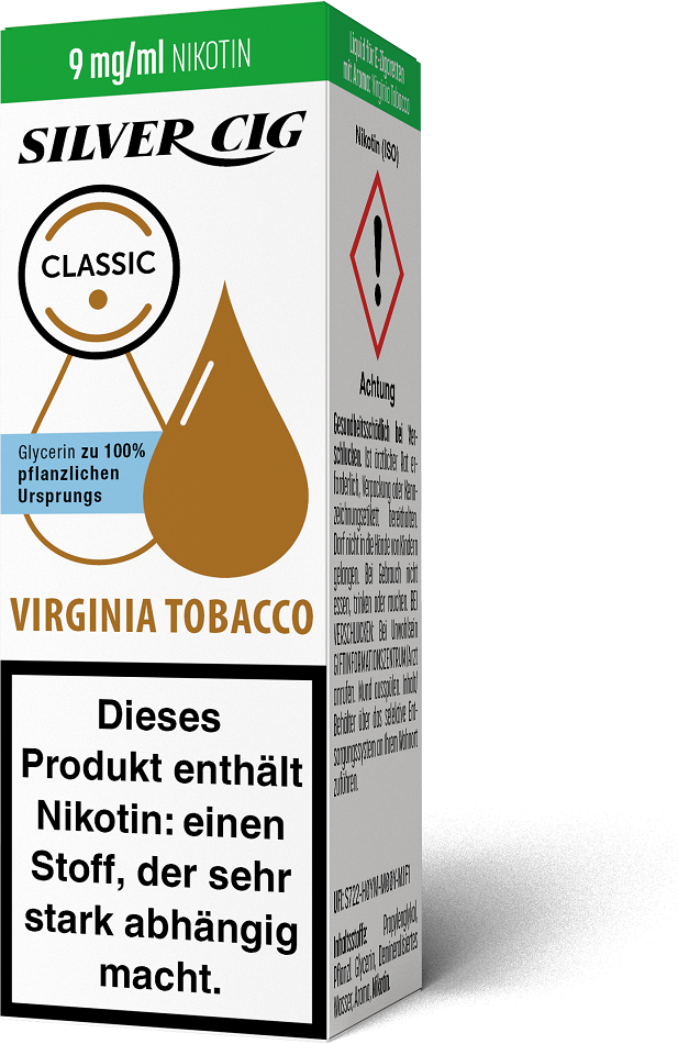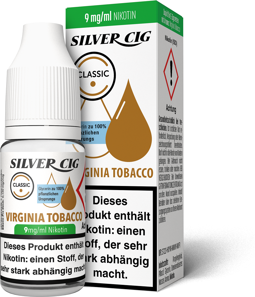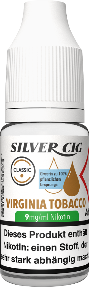 E-Liquid Silver-Cig VIRGINIA TOBACCO 9mg/ml Nikotin 10ml im 5er Dsp.(DPT2 Konform EU Herstellung PG-VG Anteil 70/30%)(mit Steuerbanderole)