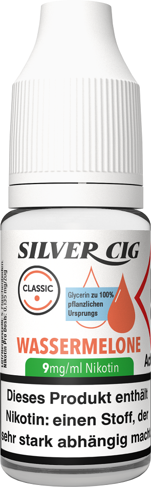 E-Liquid Silver-Cig WASSERMELONE 9mg/ml Nikotin 10ml im 5er Dsp.(DPT2 Konform EU