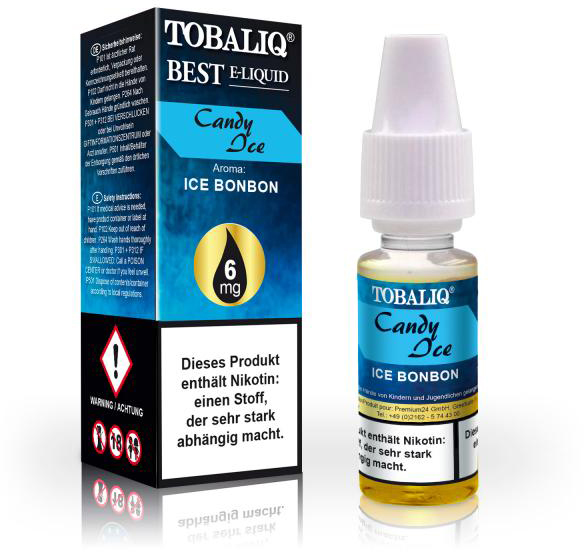 E-Liquid Tobaliq 6mg Nikotin "Candy Ice" Ice Bonbon 10ml im 6er Dsp.(DPT2 Konform PG-VG Anteil 50/50 % sehr geignet für SUB-Ohm unter 1,0 Ohm E-Dampfer)(mit Steuerbanderole)