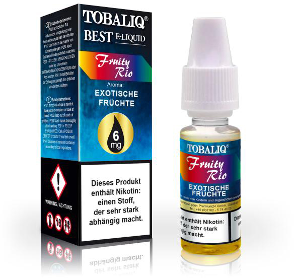 E-Liquid Tobaliq 6mg Nikotin "Fruity Rio" Exotische Früchte 10ml im 6er Dsp.(DPT2 Konform PG-VG Anteil 50/50 % sehr geignet für SUB-Ohm unter 1,0 Ohm E-Dampfer)(mit Steuerbanderole)