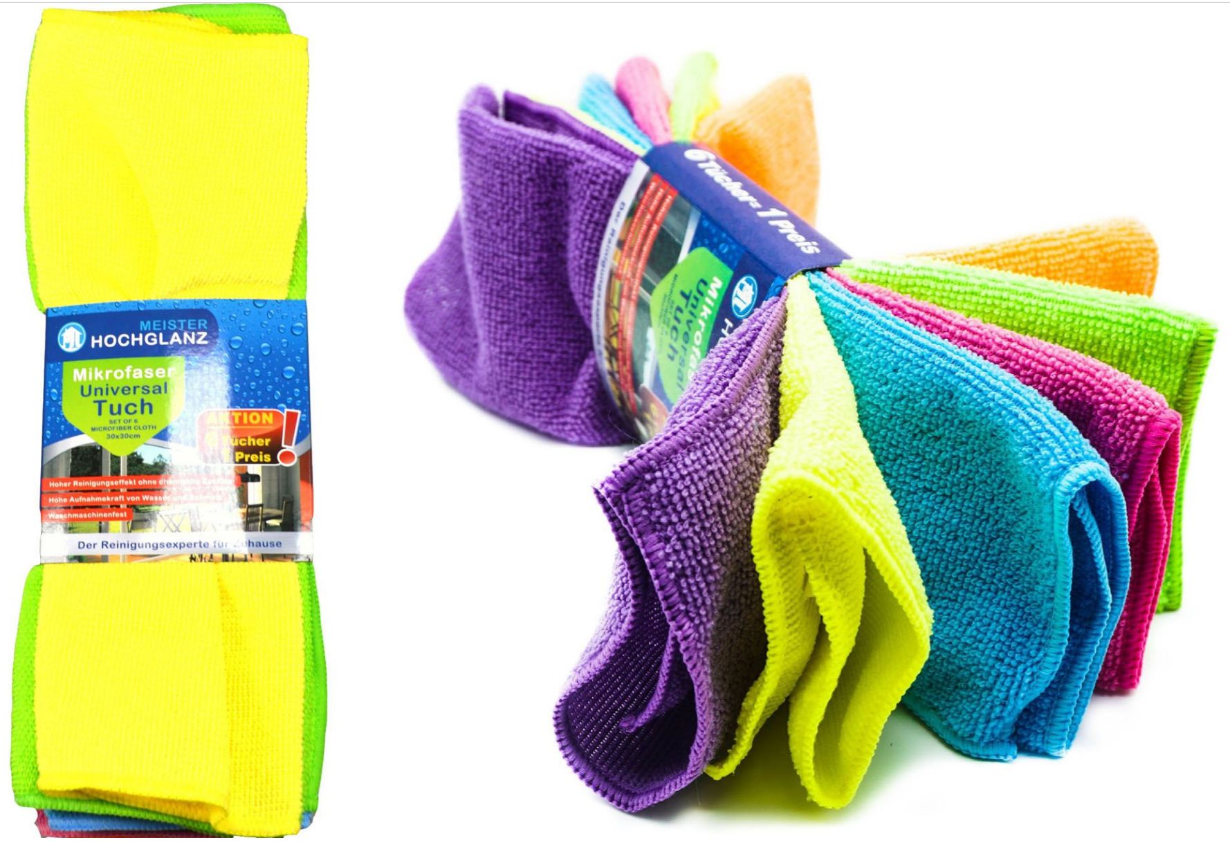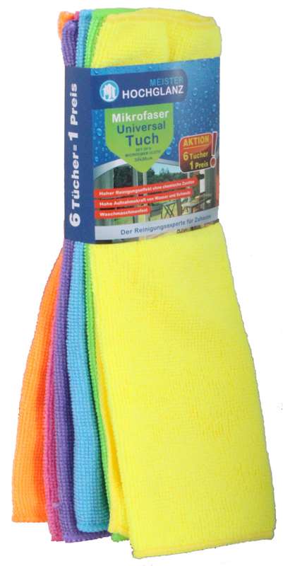 Microfasertuch Universal 6er pack Neonfarben sort. ca. 30x30xcm je 12 Stück grü