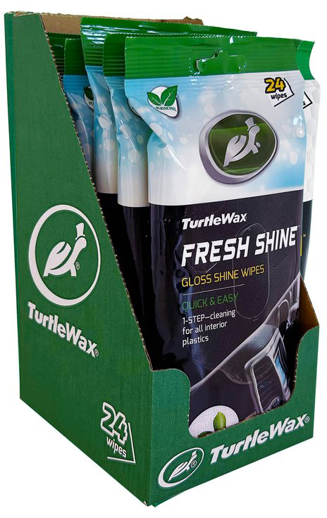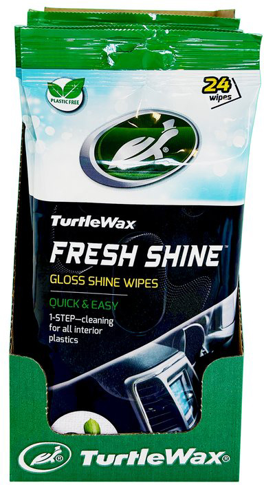 Turtle Wax Fresh Shine Gloss Innenreinigungstücher langanhaltender antistatischer Glanzeffekt für alle Kunststoffoberflächen 24 Stück in wiederverschließbarer Packung