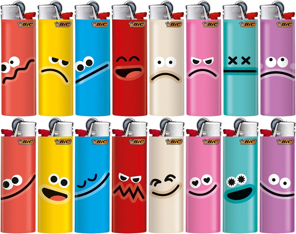 BIC Aktionspaket 1 - 151tlg. - 1x Lighter Shape Display + 50x Maxi Emotions + 50x Maxi Standard + 50x Mini Pun