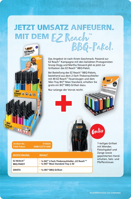 BIC BBQ-PAKET 91tlg. 40xGrillanzünder EZ Reach SNOOP DOGG + 50x Maxi Standard + BIC® BBQ-Grillset 7tlg.(Promo Paket 23)