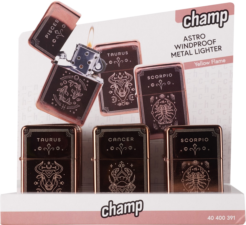Benzin Fzg. ASTRO Gold-Pink Metall Fzg. mit Sternzeichen in 12er T-Dsp.