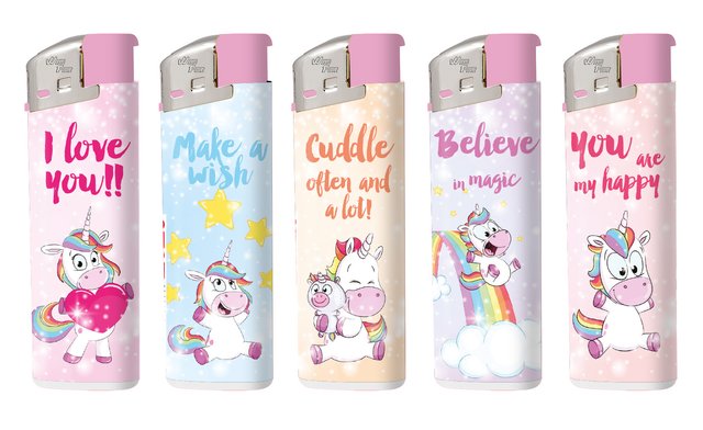 Elektronik Fzg. EINHORN mit SPRUCH Motiv im 50er T-Dsp.