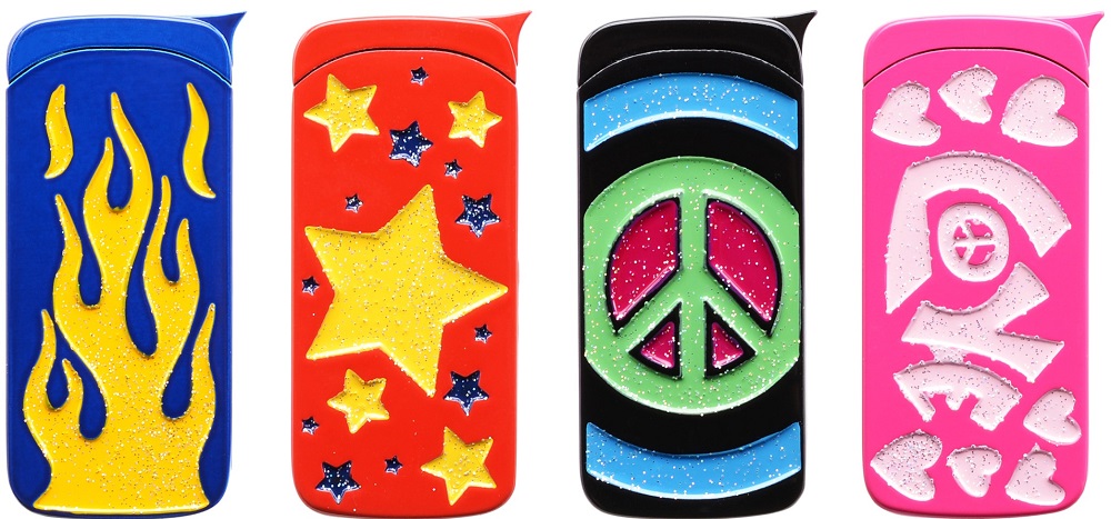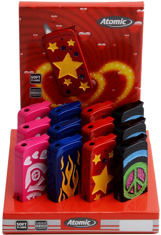 Metall Fzg. mit verschiedenen Motiven 4/s (Peace, Stars, Fire, Love) in 13er T-Dsp.