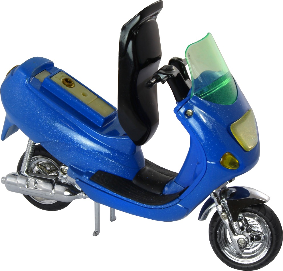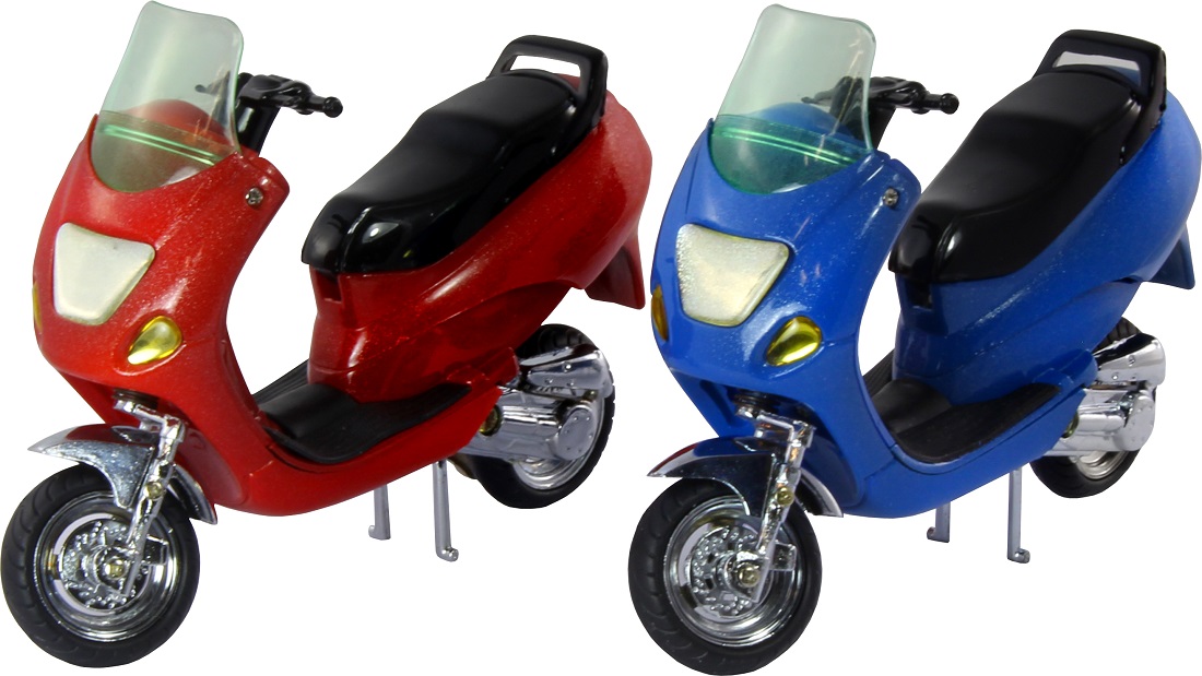 Tischfeuerzeug Motorroller nachfüllbar mit SturmFlamme am Heck des Fahrzeugs, auslösbar durch Einfedern des Hinterrads 2/s einzeln verpackt (Rot, Blau)