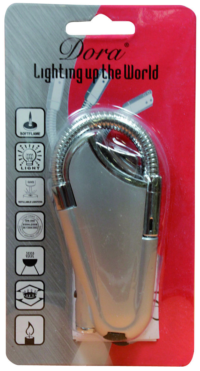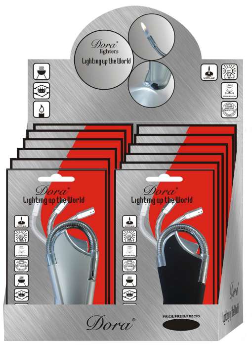 Stab/Grill&Kerzen POCKET Anzünder mit LED Metal Flexibeler Hals ca.18cm Metallic Farben sort. im 12er Dsp.