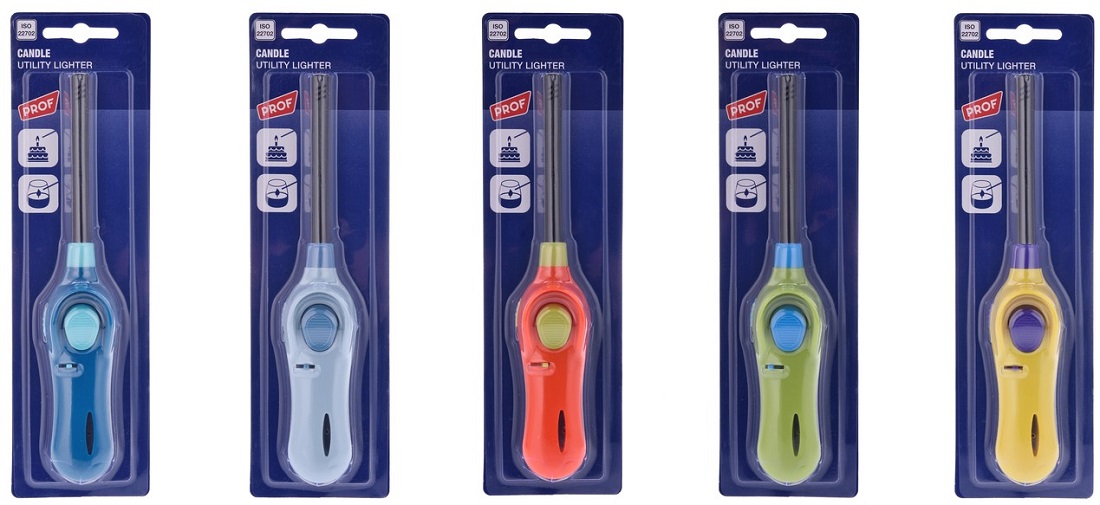 Stabfzg./Kerzenanzünder Midi Bicolor nachfüllbar normalflamme 5/s ca. 21cm (Blau, hell Blau, Orange, Grün, Gelb) auf BK