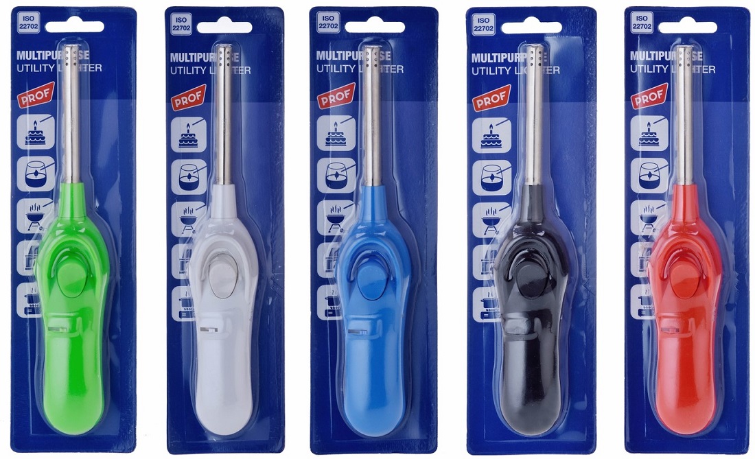 Stabfzg./Kerzenanzünder nachfüllbar normalflamme 5/s ca. 23,5cm (Grün, Weiß, Blau, Schwarz, Rot) auf BK