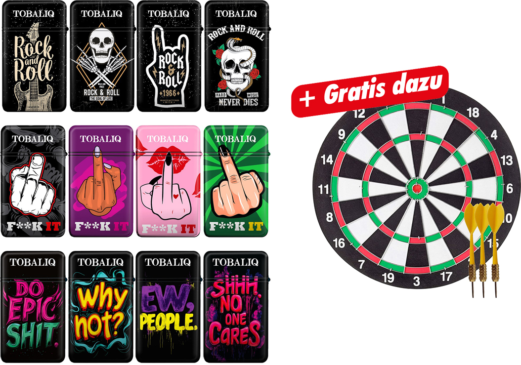 Jet Flame Fzg. - 60 Stk. MIX Motiv Sortiment, 3 Modelle je 20 Stk. im Dsp. + GRATIS Dartset, Dartscheibe aus Kork ca. 43cm, inkl. 6 Pfeile (109259, 109260, 109261 & 100737)
