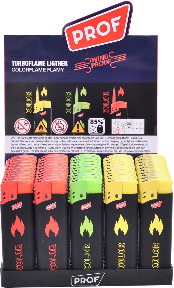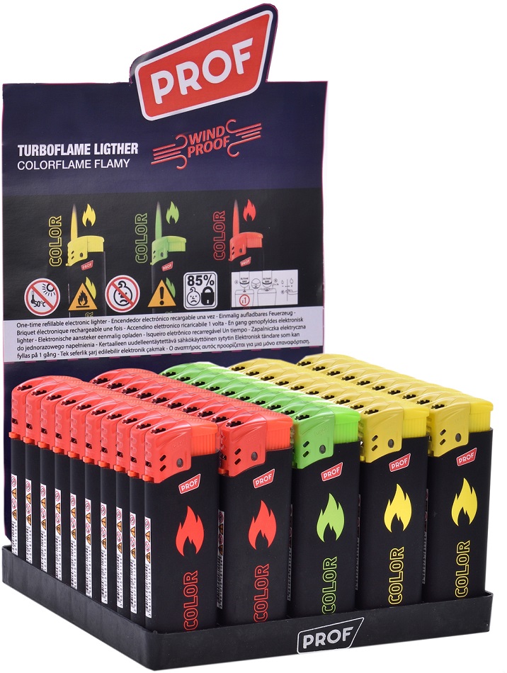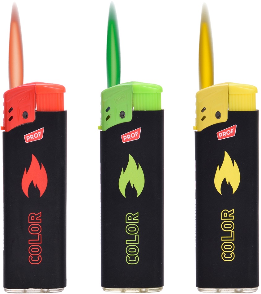 Jet Flammen Fzg. Rubber Touch mit bunter Flamme / Colorflame 3/s (Rot, Grün, Gelb) im 50er T-Dsp.