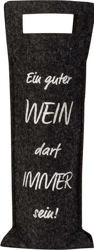 Flaschentüte "Ein guter Wein darf immer sein!" aus Filz in Grau mit Weißer Schrift ca. 41 x 14,5cm