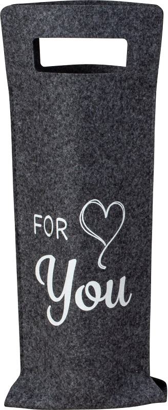 Flaschentüte "For You" aus Filz in Grau mit Weißer Schrift ca. 41 x 15,5cm