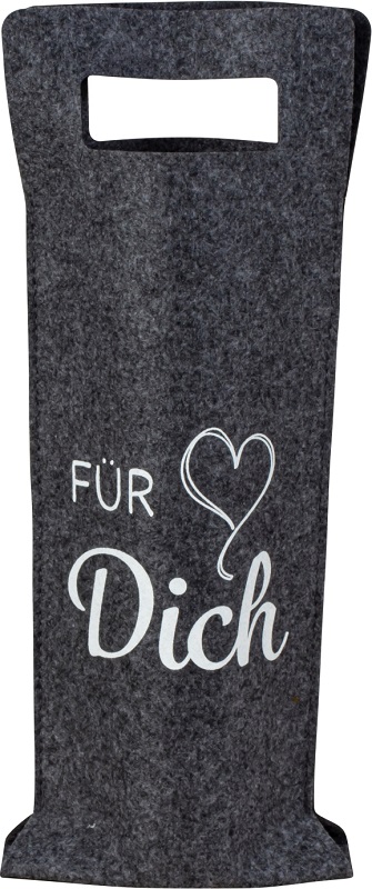 Flaschentüte "Für Dich" aus Filz in Grau mit Weißer Schrift ca. 41 x 15,5cm