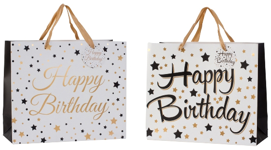 Geschenktüte "Happy Birthday" + Applikation 2/s 26x31x12cm