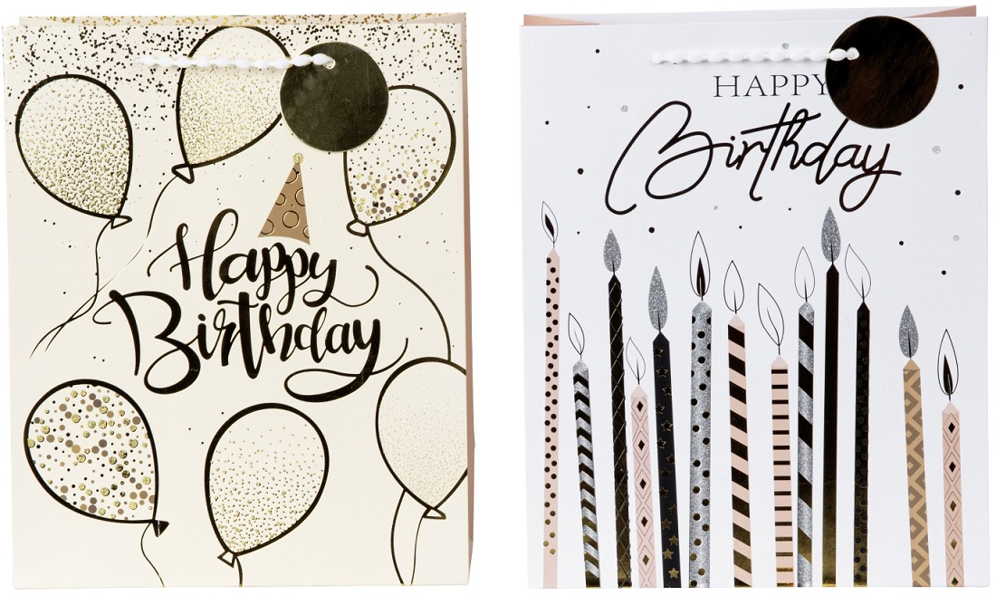 Geschenktüte "Happy Birthday" feierliche Designs mit Luftballons & Kerzen ca. 32
