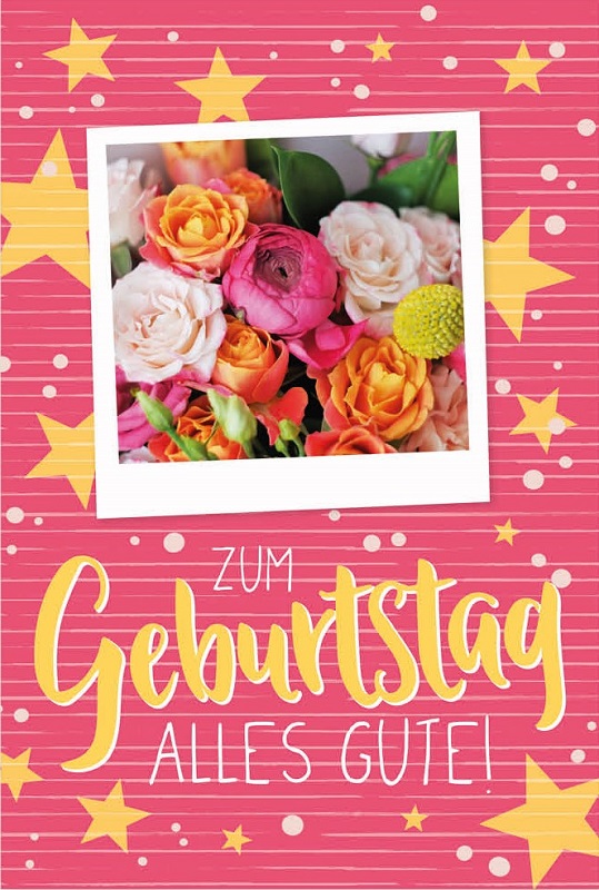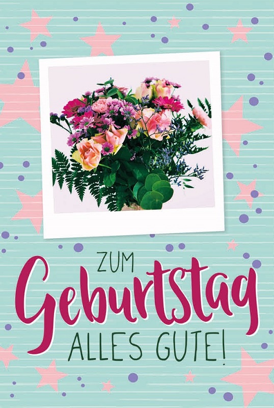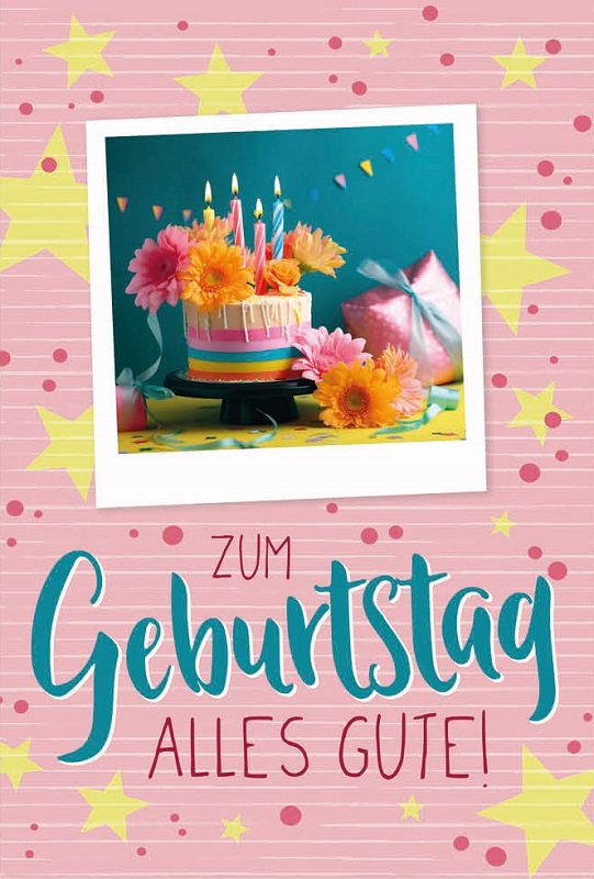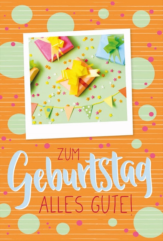 Geburtstagskarten ca. 10 x 17cm 8/s mit knalligen & bunten Motiven, im Polybeutel