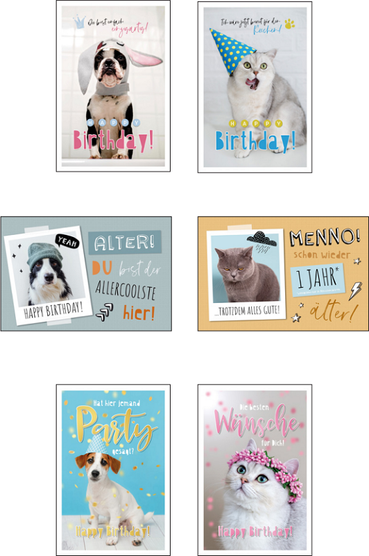 Geburtstagskarten ca. 11,5 x 17cm 6/s mit lustigen Sprüchen zum Geburtstag im Polybeutel