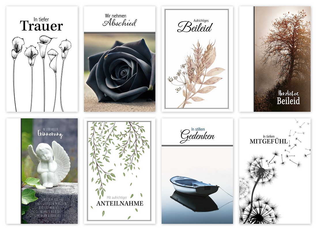 Trauerkarten ca. 10 x 17cm 8/s mit schönen & schlichten Motiven zum Ausdrücken I