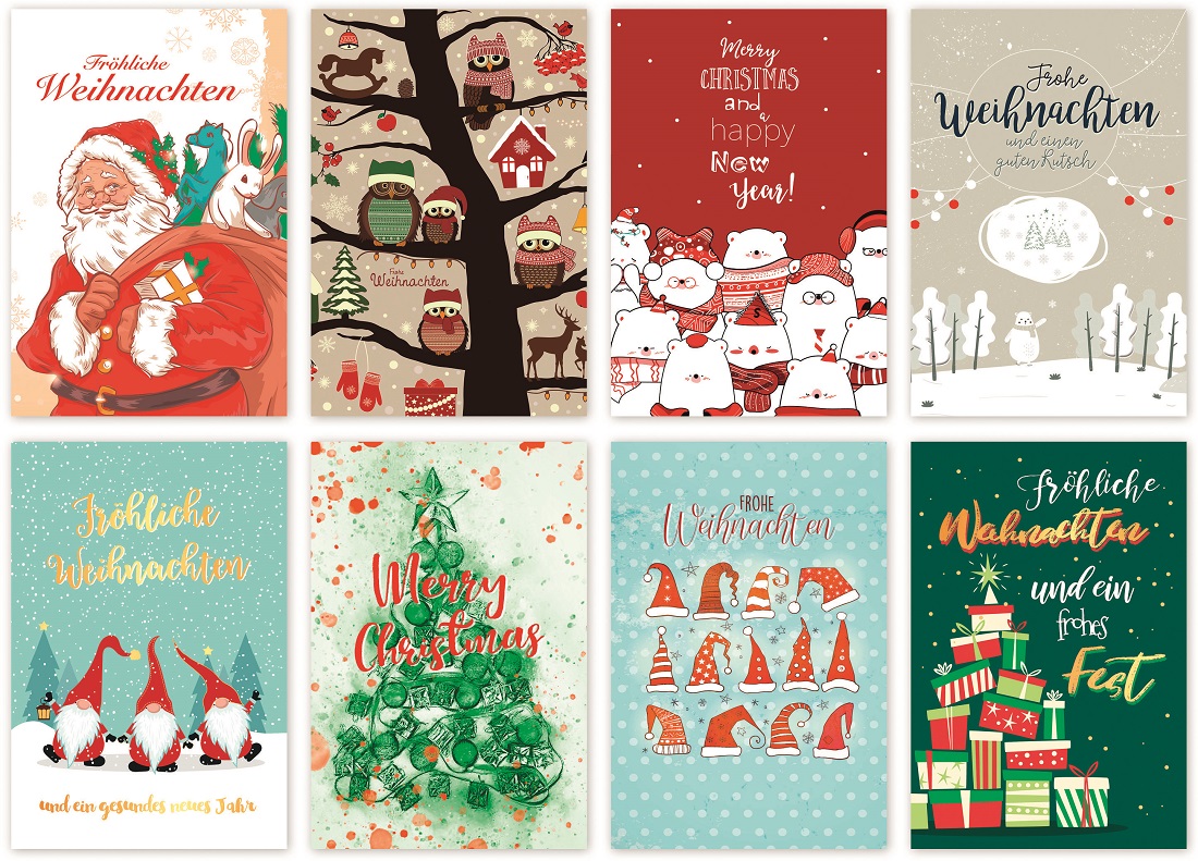 Weihnachts-Grußkarten ca. 11,5 x 17cm 8/s mit farbenfrohen aber eher schlichten